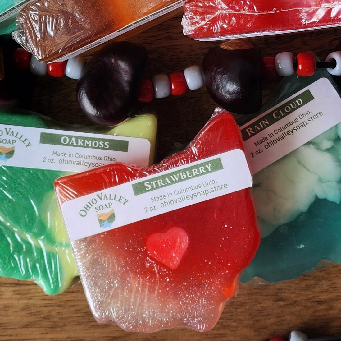 O-H-I-O! Ohio shaped fun Glycerin Shea soaps. I make each bar with love right here in Columbus Ohio. I hand-made the molds and craft each one to amazing scents you'll love. They also make perfect gifts for anyone living away and want a piece of home.